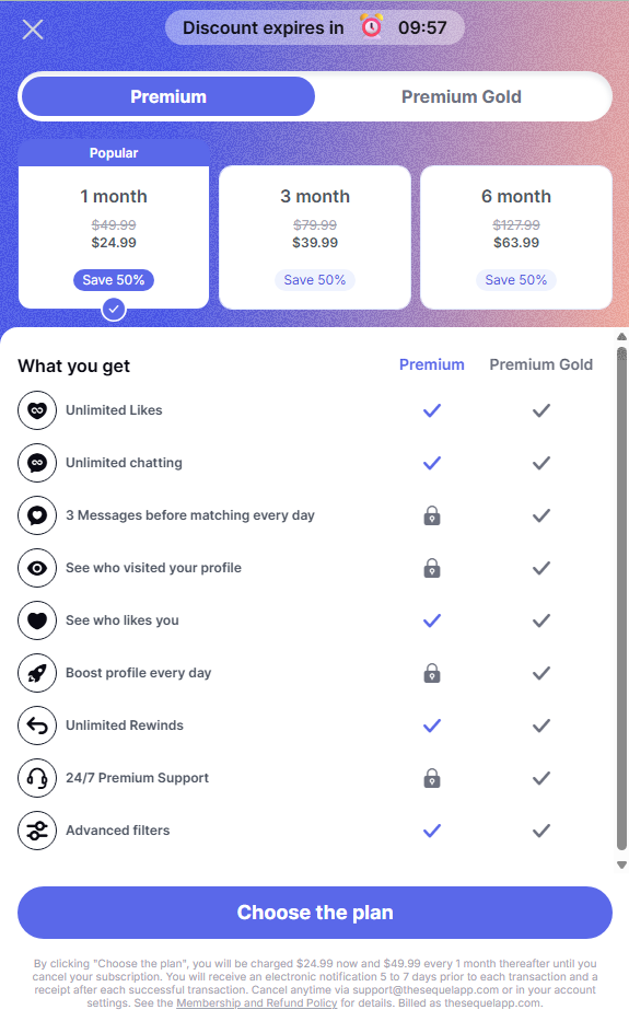 You can choose between Premium and Premium Gold subscription plans, as well as select the number of months in your Subscription plan.